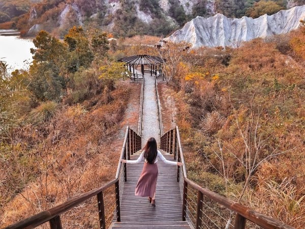 台南人的超私房秘境!園內擁有夢幻湖、月世界般的無敵景色,還隱藏了大片惡地景觀,不僅有著月球表面般的粗曠美,加上湖泊圍繞其中,與白堊土山陵完美結合,黃昏時兩旁的景致倒映在湖面上,宛如走進仙境般世外桃源,令人心曠神怡啊!