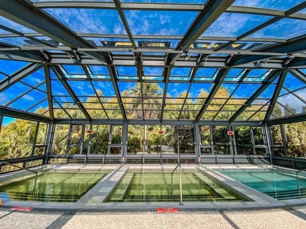 700坪空地開闢一個露天溫泉天地,含有多種泉池,溫泉池、冷泉、深淺池、兒童戲水池、SPA等,供旅人隨心自由泡湯,洗浴最純粹的享受。設有烤箱及蒸氣室,還有40米游泳池,喜歡游泳的賓客可以暢游其中。