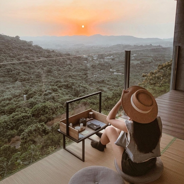 園區提供了兩種房型,分為山頂閣樓及迎山客房,房內寬敞又舒適,就連備品也相當齊全,獨家樓中樓設計搭配特色行動茶席,讓住客一邊喝農場自製龍眼花茶一邊盡覽壯闊美景,鬱悶已久的心情在此豁然開朗啦!