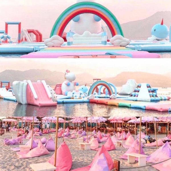 ▲建在澄澈海水之上的Inflatable Island,設有千禧橋、高平衡木、巨型泰山鞦韆等多種遊玩項目等你來體驗!