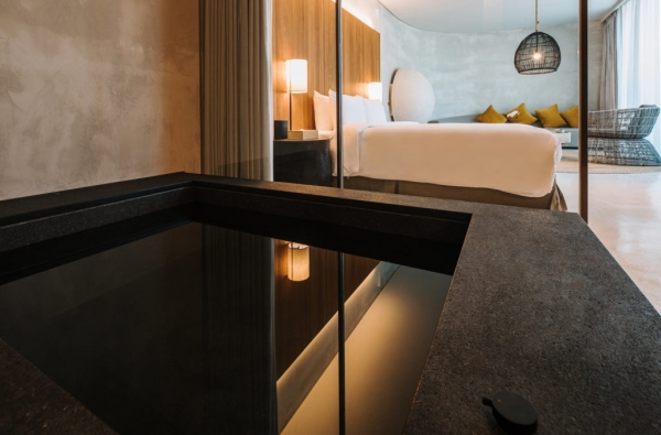 山丘房僅此一間,是唯一將湯屋安排在窗邊的房型, 讓您在泡湯的同時,欣賞遠方山海,身心感官同時得到舒緩放鬆。