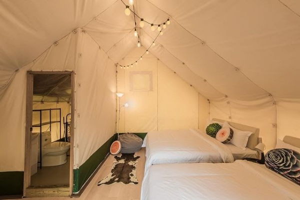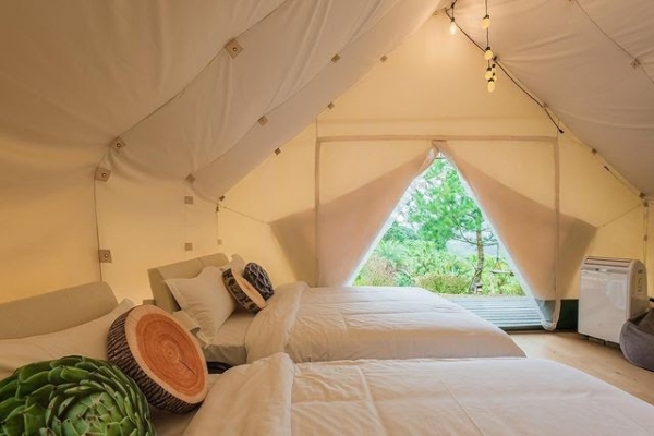 位於新竹橫山半山腰的豪華懶人露營區,占地多達18,000坪,分成6大區域,共有39間帳篷與小木屋,其中包括最經典的「白色大帳篷」、「夢幻童話樹屋」以及「森林中的合掌屋」,每間房型可容納2-4人不等,雖然位置與高度不盡相同,但都強調擁有專屬的獨立衛浴,舒適程度可是媲美飯店套房喔!