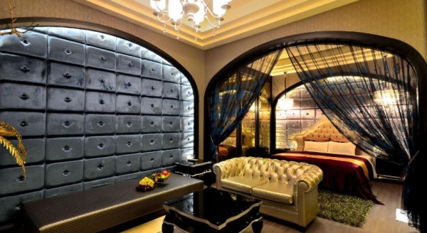 房間室內裝璜格調採用歐式風格,客房內挑高6米的樓中樓VIP套房讓你猶如置身歐式宮廷的感覺以及床紗房更有浪漫.隱祕的風格。