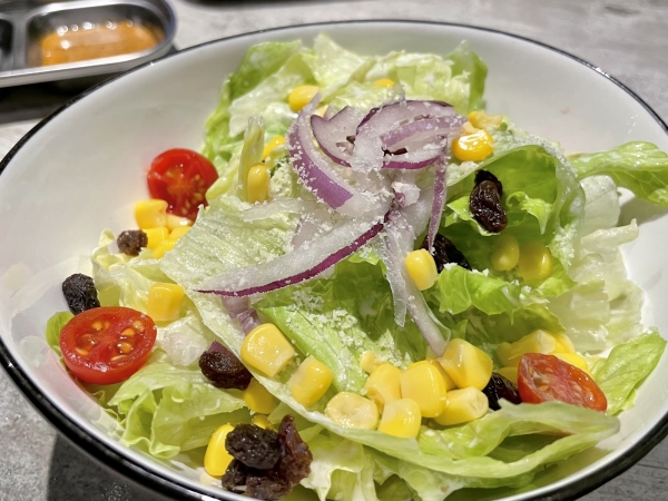 除了雞湯無限暢飲還有附薯條、沙拉和飲料!一樣有附上沙拉、脆薯,沾醬的話也有店家特調的凱撒醬、番茄醬可以使用,就連雞湯都是燒肉餐廳等級,每天熬煮8個小時的雞骨蔬菜湯,用心程度不一般啊!