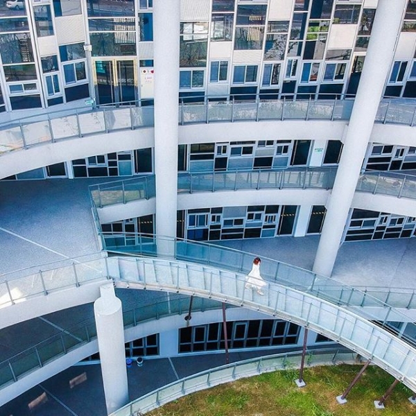 這個圓弧線的樓梯,是來到台江文化中心的必拍點!