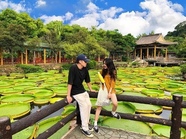 雙溪公園每年7~9月會有超多大王蓮盛開,在充滿濃厚中國風的庭院中,看著池塘中佈上滿滿的綠色大王蓮,說實在的相當壯觀,也是很有特熱的拍照點啊!可惜近年來這邊的大王蓮已經不開放民眾坐上去了,不過光是在涼亭上拍照也已經夠美的啦!