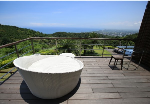 蜻蜓石最頂規的房型,配備Osim天王級按摩椅、紅酒、可樂、Nespresso膠囊咖啡機、台檜木烤箱、半開放式的奢華浴室,一旁的私人樓梯更可直下泳池。