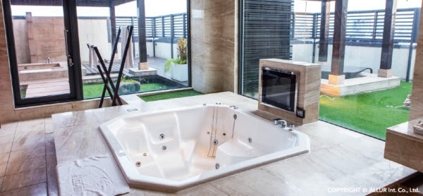 超大的空間,有獨立的水療池,平日一個晚上大約一萬多,是這裡最高級的房型,超多人來這裡辦生日派對的~