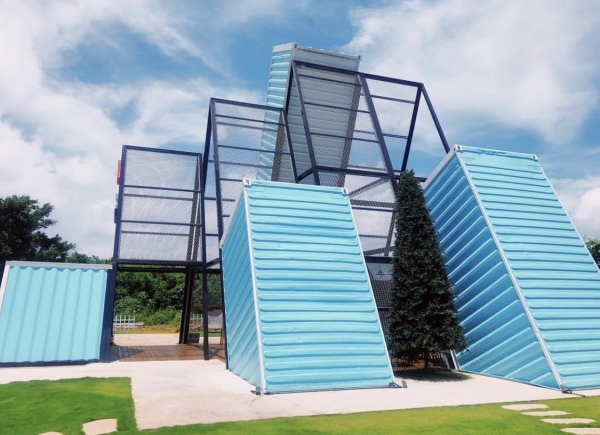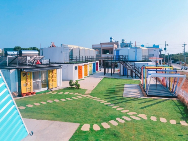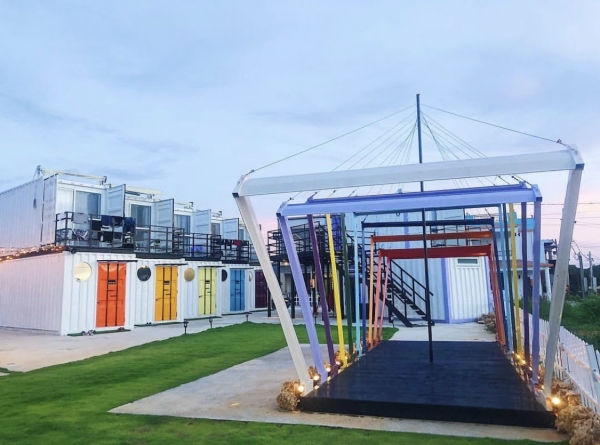 近百坪的活動空間,色彩鮮豔的貨櫃屋,每一間都是包棟!IG上超人氣打卡的新地標,好友們聚集在七彩隧道前一起拍照!另外還有一個賣點就是三角形的玻璃屋穿插著貨櫃屋,是享用早餐的地方!