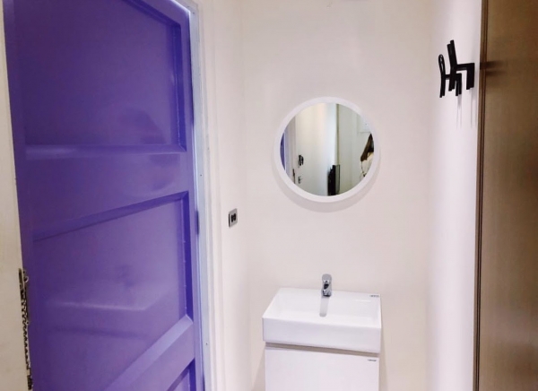 雙人房的房型不會因為是貨櫃屋就少東西,竟然還有冰箱,小型的沙發椅!
