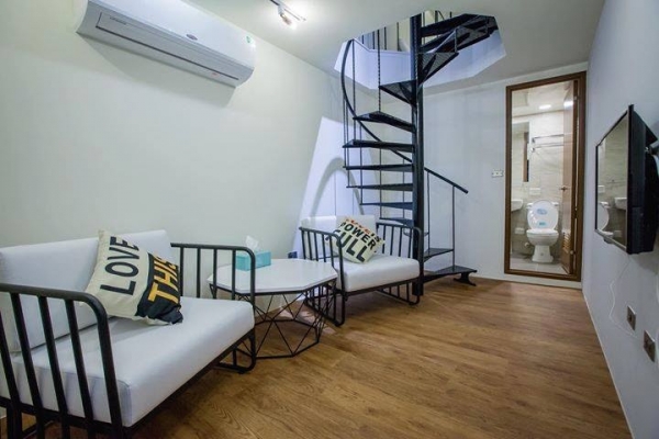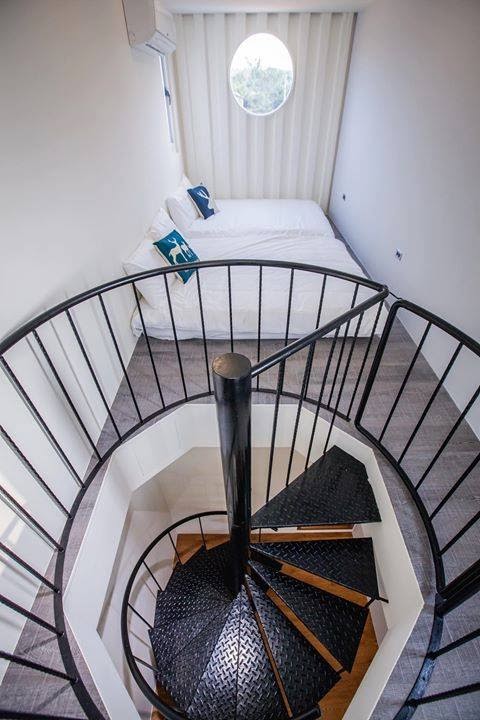 貨櫃屋裡的四人房,是樓中樓的房型!房內甚麼都有,獨立的衛浴設備,還有唯美的旋轉樓梯!超適合三五好友相約一起來小島旅行,體驗不一樣的住宿!