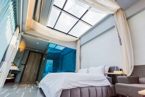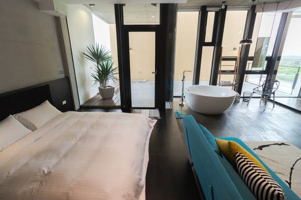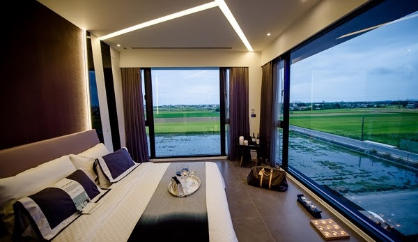 Aura Villa-悠悅光渡假民宿距離宜蘭知名景點梅花湖不遠,也是許多偶像劇曾經取景的地點。游泳池旁的獨立玻璃雙人villa可以說是許多情侶的首選,兩側各以大片的落地窗呈現,撥開窗簾景色是泳池河畔。不只一旁大面積的落地窗,就連頭頂上也設有小型天窗。