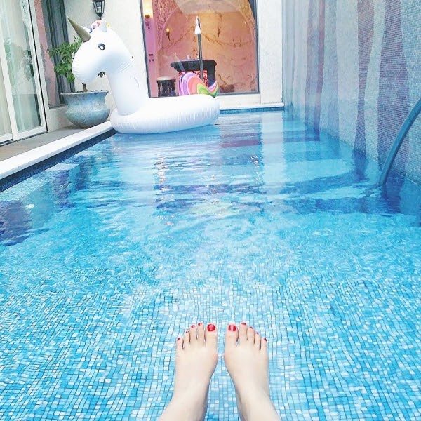 除了住宿之外也可以選擇休息,房內不僅有泳池讓你不用去海邊曬太陽就可以拍網美照,還有設置影音設備,來這裡唱歌也超划算!