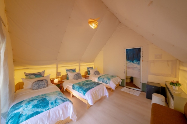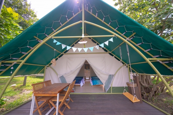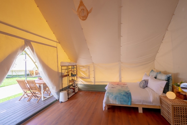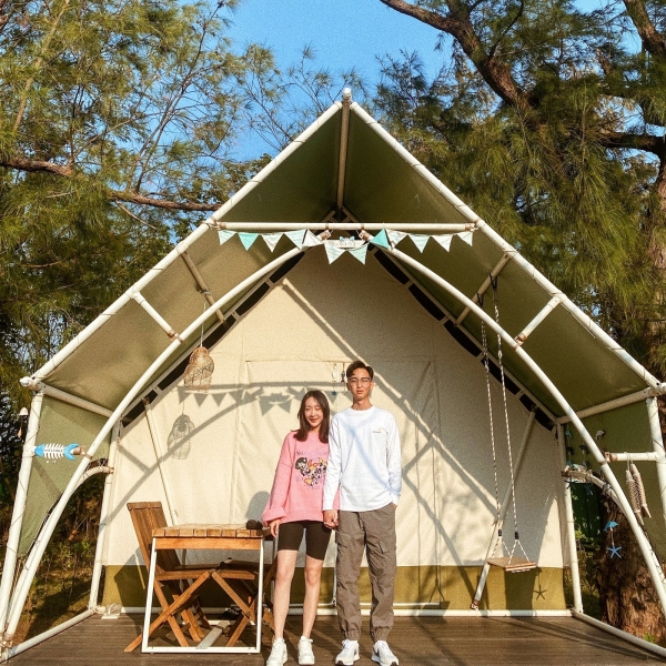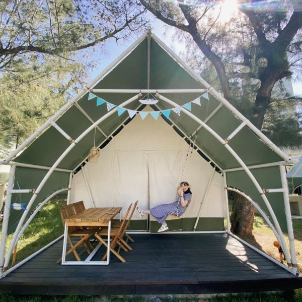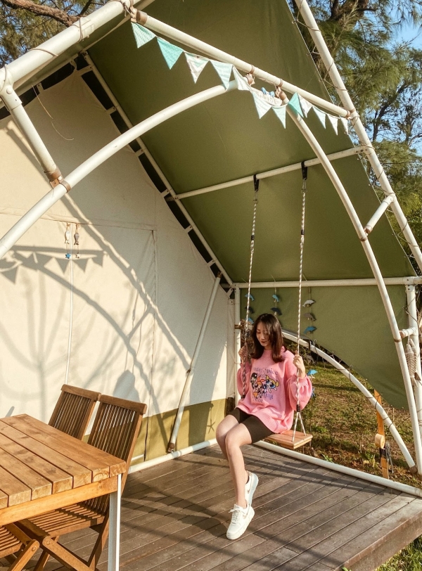 園區內擁有32座豪華露營帳篷,每個豪華露營帳皆親海,除了有主題風格不同造型的帳蓬,從2人到4人都有,還有海景第一排視野極佳的海上屋納海木屋帳,頗有異國風情~
