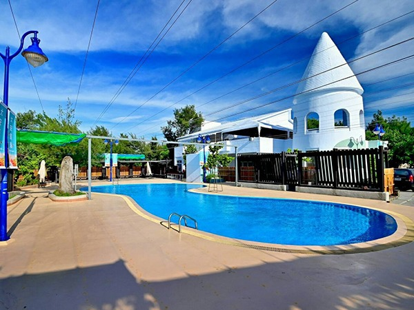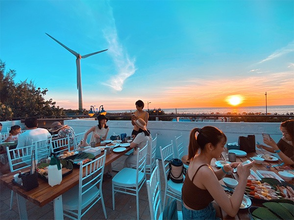 在這顯眼的白色建築上有一間O’view海景餐廳,早餐、午餐、下午茶到晚餐都有,提供了麻辣鴛鴦火鍋、戶外BBQ甚至海鮮以及buffet無限吃到飽!能在這無邊際的晚霞下BBQ,賞著無敵海景,吹著海風,多麼浪漫啊~