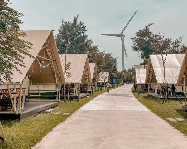 向海那漾 Glamping豪華露營 位於台中大安濱海樂園,海邊戲水、探索生態、觀看日落、享用美食,全包式海邊河口花園豪華露營區,同時園區內更設有景觀餐廳、輕食咖啡吧,並推出創意DIY課程,讓露營行程能滿載美好回憶。