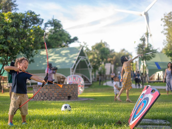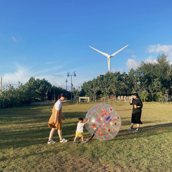 園區內有一大片自然草皮,大人小孩都可以在上面自由地奔跑玩耍。不論是泡泡足球、大地團康、小朋友的追趕跑跳碰,還有給小孩專屬的海盜塔,讓孩子們可以在園區內舒適安全的遊玩。