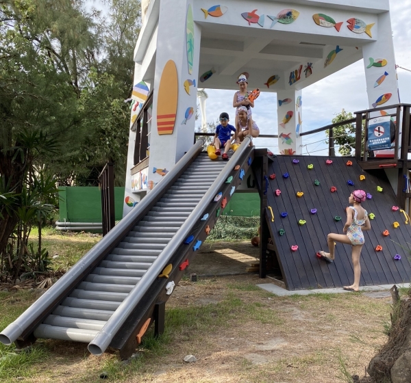 附設有戶外戲水池及噴水區,戲水池邊也有更衣室、洗手間以及洗腳區,以保持水池的乾淨衛生,更可以供大小朋友在這裡玩得開心,玩得安全!