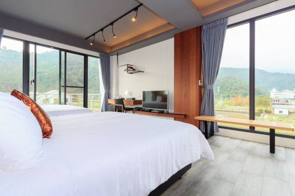 遠望...翠綠延綿的山巒近在咫尺,每一間房型的大片開窗都是一幅幅美麗的風景。 每一間房型都有不同的風格,皆有獨立衛浴還是乾濕分離設計,部分房型還有造型浴缸!