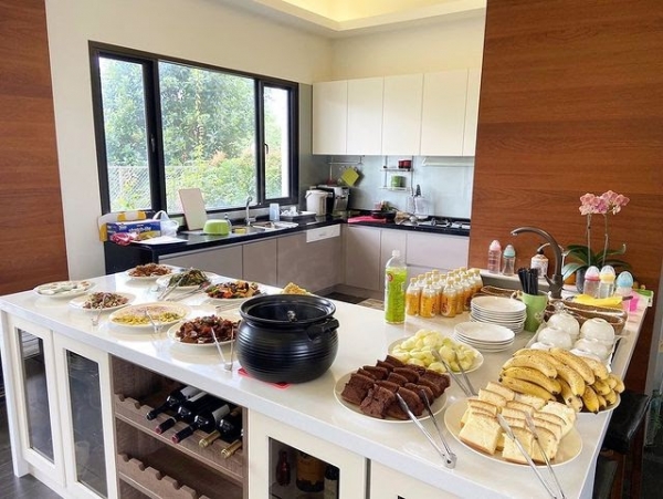 高挑寬敞的大廳設計,以溫柔色調為主,非常溫馨低調奢華又舒適,還有配備齊全的廚房,設施皆可隨意使用,喜愛下廚的人可以大展身手啦!