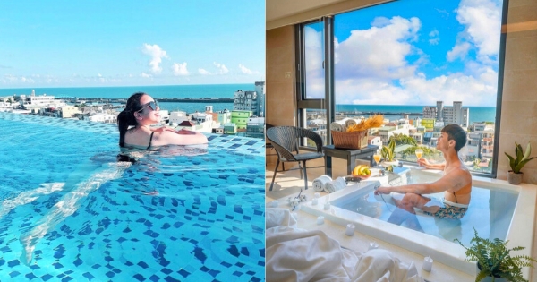 不論是在房間或是在頂樓的泳池都可以看到超無敵的海景,天氣好時還能看見小琉球!到夜晚游泳池會點亮炫彩燈光,可以來到星空酒吧小酌微醺一下!