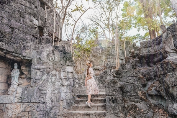 超狂偽出國景點「台版吳哥窟」在這裡!位於台南楠西萬佛寺的小普陀禪修公園,園區佔地廣闊,還有著許多異國風建築、佛像浮雕及石砌造景,還能大拍鐘乳石洞,有如鬼斧神工的場景令人讚嘆,來台南旅遊千萬別錯過!