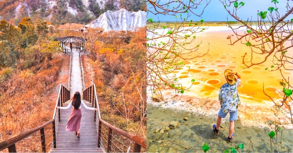 台南在地人的私房打卡秘境!園內擁有夢幻湖、月世界般的無敵景色,還隱藏了大片惡地景觀,不僅有著月球表面般的粗曠美,加上湖泊圍繞其中,與白堊土山陵完美結合,黃昏時兩旁的景致倒映在湖面上,宛如走進仙境般世外桃源,令人心曠神怡啊!