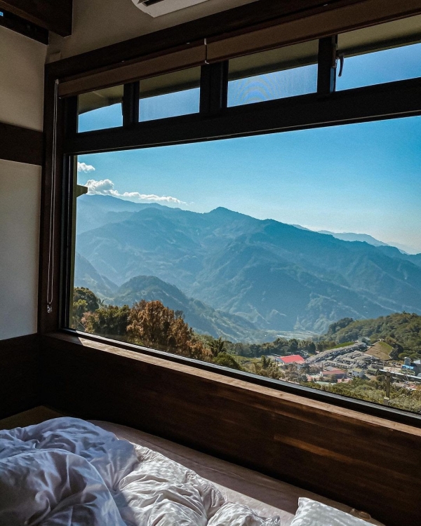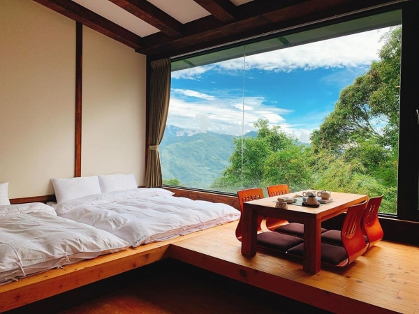位於阿里山半山腰上一間療癒系日式旅宿,周圍被滿山森林包圍著,且房內擁有超大片雙景落地窗,放眼望去整片茶園、雲海有夠仙,讓人彷彿置身於壯闊優美的山林裡,加上日式榻榻米及木質感家具,有種回到家般的溫暖,身心靈都超放鬆,是個遠離喧囂好去處啊!