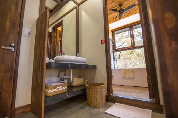 衛浴空間寬敞又舒適,就連備品也很齊全,貼心的是還附有獨立浴缸,讓住客可以一邊泡澡一邊欣賞窗外美景,享受愜意的夜晚時光!