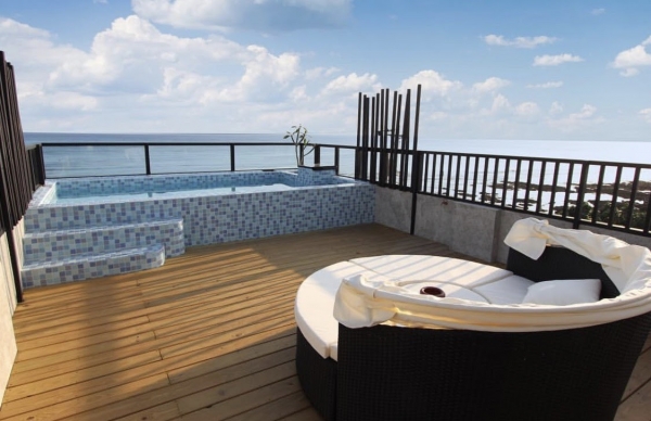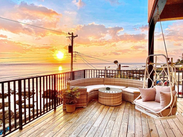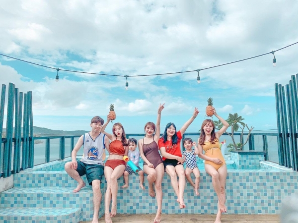 民宿頂樓就是一望無際的絕美海景,還有戲水池可以玩水!想拍照的網美一定要來這!