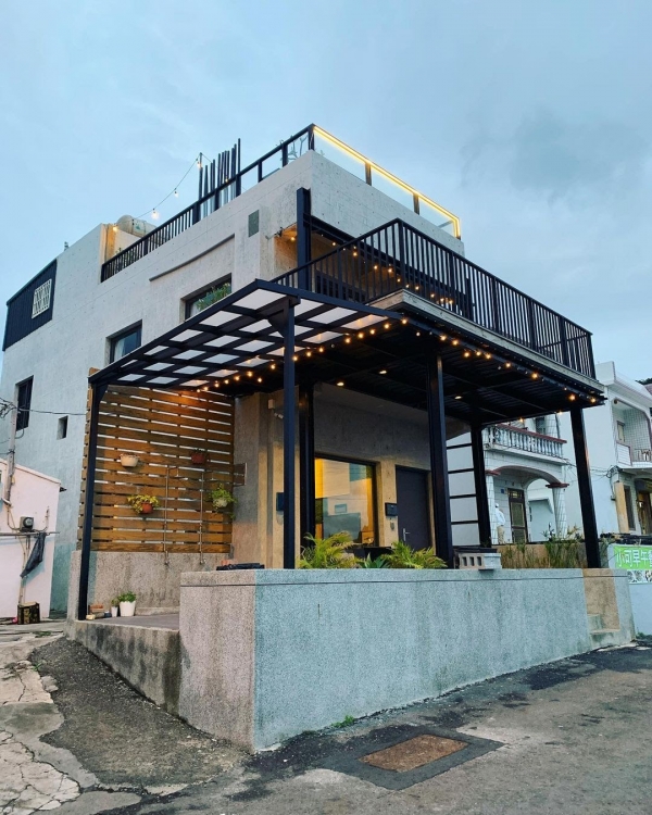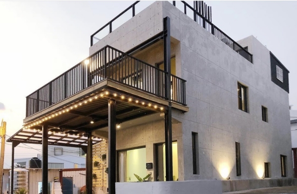 超人氣清水模建築簡約質感的外觀,在夜晚的時屋簷上的燈泡會亮起,點亮了小村落!遠遠就可以看見房子在閃閃發光!