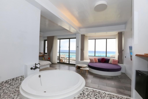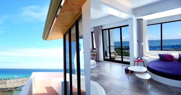 除了包館濱海別墅,還有其他海景房型,房間皆有落地窗,拉開窗簾陽光直接灑進房內,採光非常良好,夜晚也可直接拉開窗簾,觀望繁星夜空,搭配著海浪聲一同入眠~