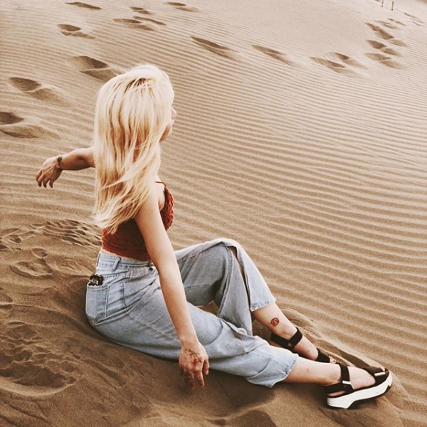 站在沙丘頂斷由下往上拍,感覺離天空好近呀~