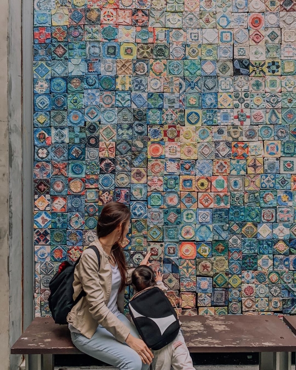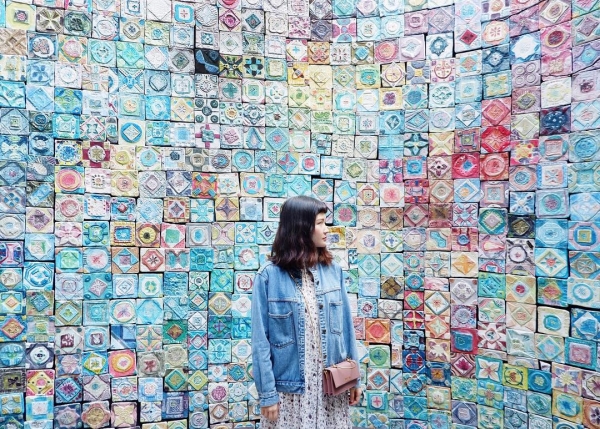 除了大荷葉之外,這一面牆絕對震撼你的目光。色彩繽紛的藝術品全部彙整起來,形成一面彩色牆,超美!