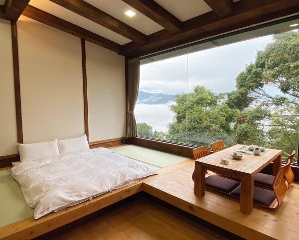 位於阿里山半山腰的日系秘境旅宿,房內寬敞又舒適,採大片雙景落地窗設計,放眼望去即是整片茶園、雲海美景,其裝潢擺設也超道地,日式榻榻米搭配木質家具,讓人感到愜意放鬆,有種回到家的溫暖,是個遠離喧囂的好所在啊!