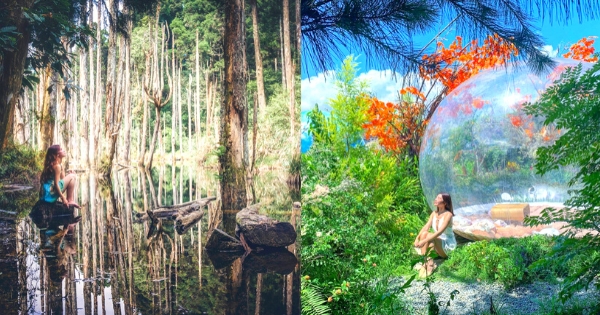 堪稱「台版九寨溝」的忘憂森林隱身於杉林溪附近的豬彎,因南投九二一大地震後,這邊積水變成一處沼澤濕地,讓一大片杉木泡在水裡而枯死,形成今日的人間仙境!