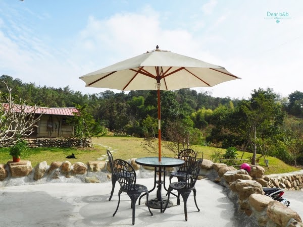 民宿前有片廣大庭園,放眼望去整片綠意盎然,不僅可以讓小孩在這裡盡情玩耍奔跑,大人們也能愜意地坐著喝茶聊天,享受悠閒的度假時光!