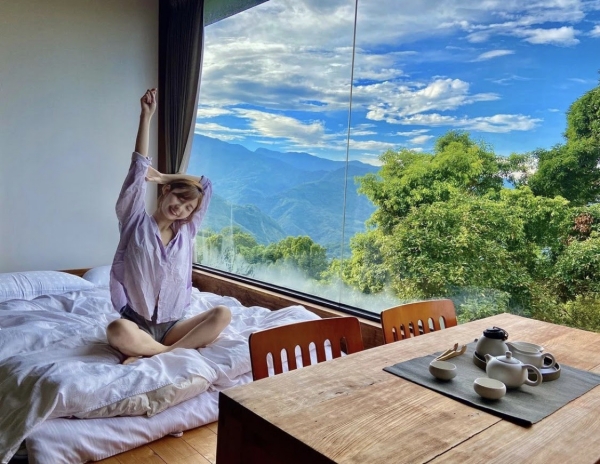 只開放在Airbnb網站預訂的嘉義最夢幻民宿,就位在阿里山半山腰上的「山居」!房間內有超大的落地窗可以直接看到遼闊的茶園!
