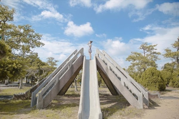 過去這裡謠言不斷,後經改造後成為遊樂園,是由旅日僑胞黃秋茂博士獨資興建,園中造景以人工塑像為主,各種人和動物的雕像,最吸引人的是這個八角獸溜滑梯及迴轉溜滑梯,從上方往下看就很特別啦~~~