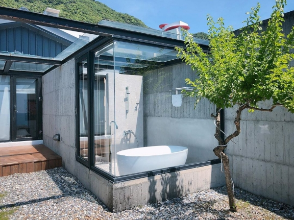 坐落於花蓮鹽寮海洋公園附近,外觀以簡約清水模為設計,除了擁有絕佳地理位置外,最吸睛的是每間房都正對著海,讓你躺著就能欣賞海天一色,更能在玻璃屋中慵懶泡澡,是放鬆度假首選聖地!