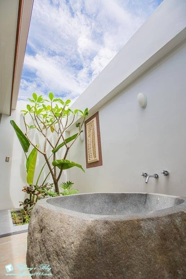 民宿的衛浴格局相似,差異主要在浴缸,以造價高昂的斬石子工法製成的不規則狀石頭浴缸,粗看似花崗石,呈現天然的石質感!