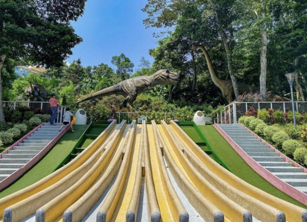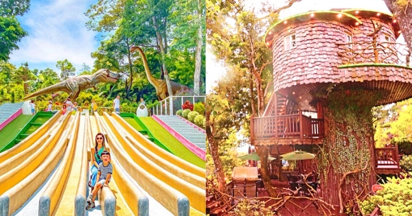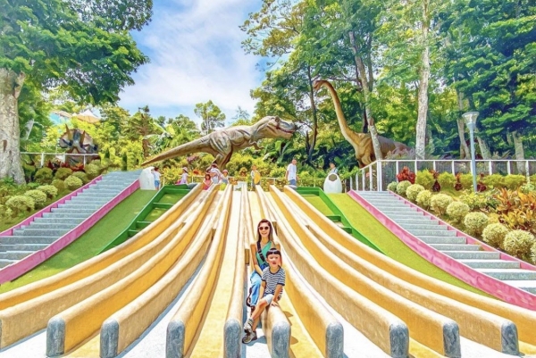 蘇維拉莊園的的設計,就像把侏儸紀世界整個搬進來了,小朋友最喜歡的恐龍,就在好玩的溜滑梯旁邊,整體拍照起來超壯觀!除了這個溜滑梯莊園裡也有一個超長的森林溜滑梯,一定要去體驗看看刺激快感!