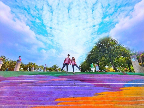 位於太平的九二一震災紀念公園,就是為了在921嚴重毀損的太平重建而紀念,入口處的彩繪樓梯超吸睛、已成為熱門的打卡景點,還沒拍過的就太落伍啦!