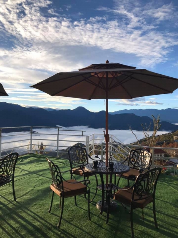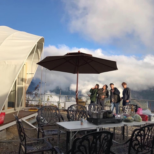帳篷外的美景真的是美不勝收,如果天氣好運氣好,皆能看到雲海日出,絕對不虛此行!戶外有提供公共桌椅搭配遮陽傘,不想待在室內也可以坐在外面聊天喝茶!