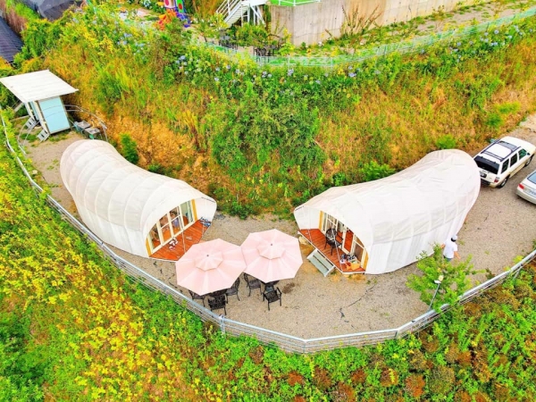 位在2000多公尺的高山草原上,有一處清幽的露營區,五彩繽紛的瓢蟲帳篷,還有提供最特別的「白王蟲帳」,外觀就像毛毛蟲一般,長條型設計,有沒有想到宮崎駿動畫「風之谷」裡的王蟲啊?內部空間寬敞,如有需要其他帳篷或器具可以租借,一帳以四人為單位,最多加到6人。