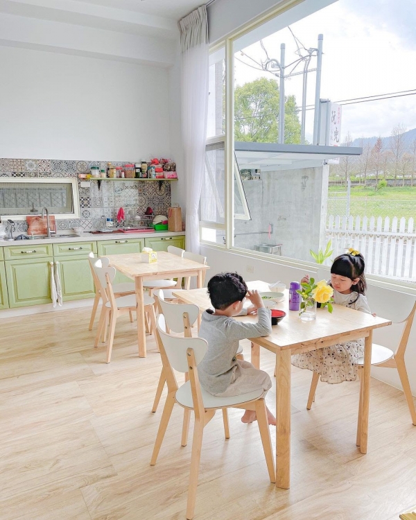 親子住宿首推,屋內選用淺色系的木質傢俱,搭配編織的竹藤超有感!民宿老闆養的狗狗還會出來迎賓送客,超討喜!