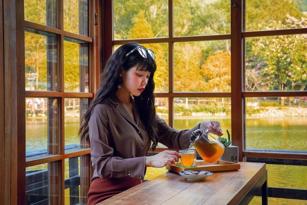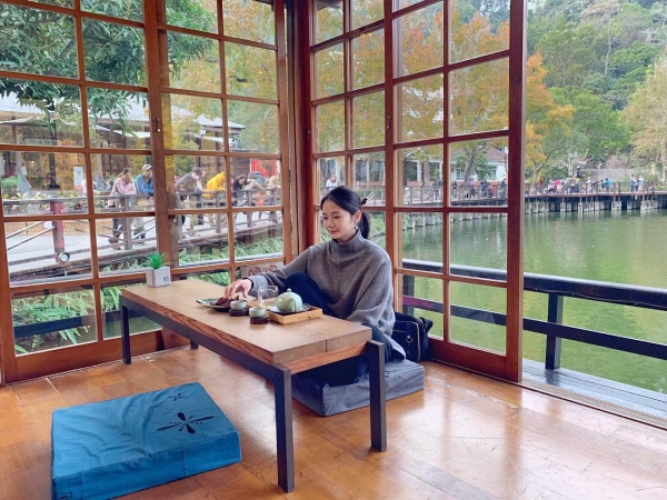 一邊喝茶享受美食~一邊欣賞絕美的湖景~