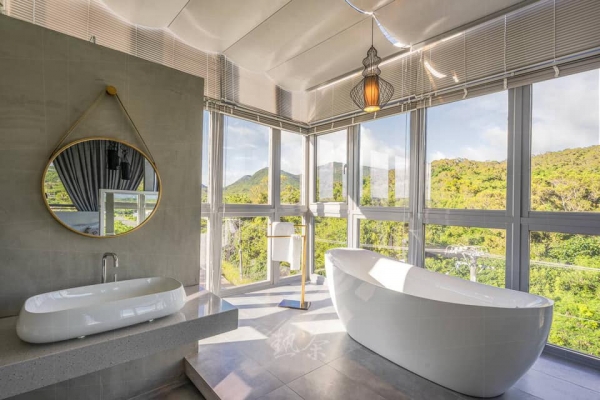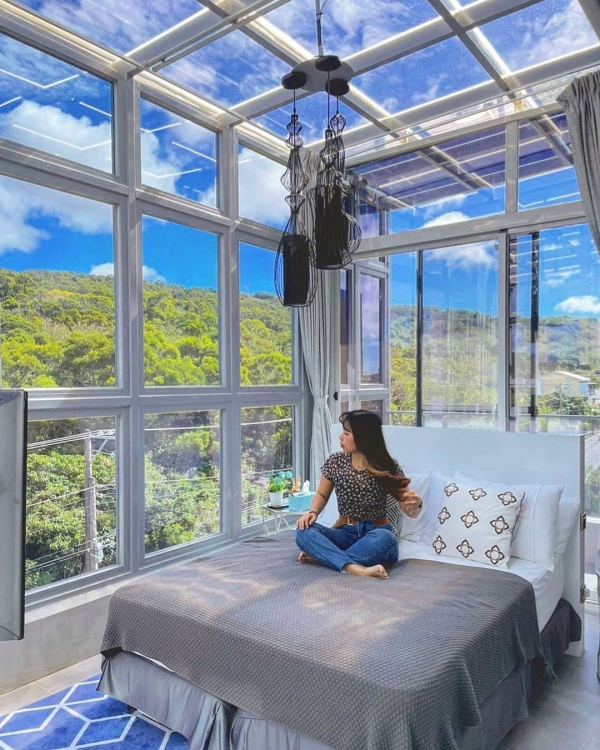 最吸睛的豪華玻璃屋,房內採無隔間設計,佈滿挑高透明落地窗,將視野擴伸至最大廣角,擁有1.8米大浴缸,還可開啟上方電動窗簾,映照出外頭迷人的光影變化,夜晚躺在床上就能飽覽無垠星空,享受被靜謐夜色環繞的幸福感。