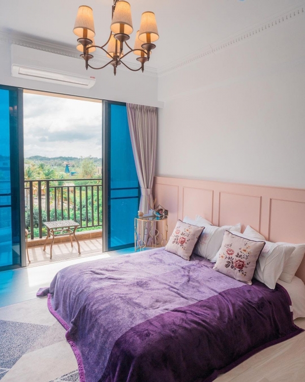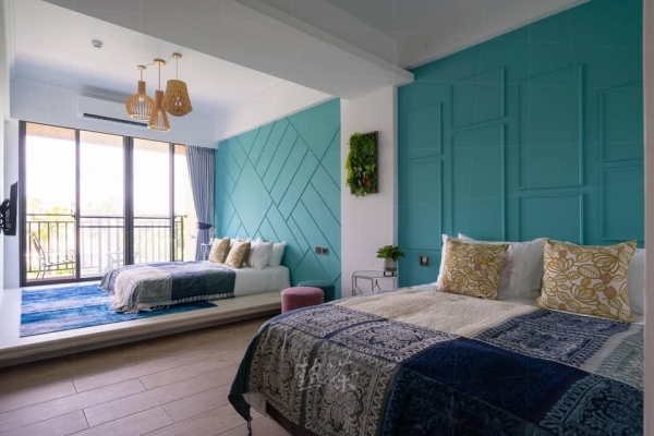 適合家庭入住、好友出遊四人房,每間主題都非常夢幻,不管是粉嫩色調,還是湖水綠,圖騰被單,繽紛的色調,溫馨又不失質感!皆附有獨立陽台可以賞景喝茶!