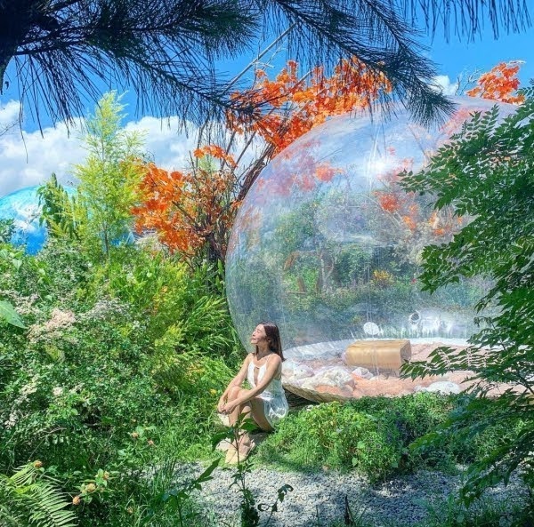 在地人的超私房秘境!為專賣多肉植栽與DIY教室,夢幻庭園中種滿了許多花草植物,其中最吸睛的就是像太空艙的透明泡泡屋,還有這顆巨大月球,彷彿闖入了夢想中的仙境,有夠好拍!
